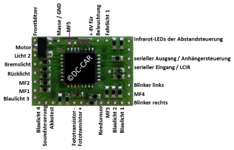 Weil der Infrarot Empfänger fehlt bietet der Decoder keine Abstandssteuerung.