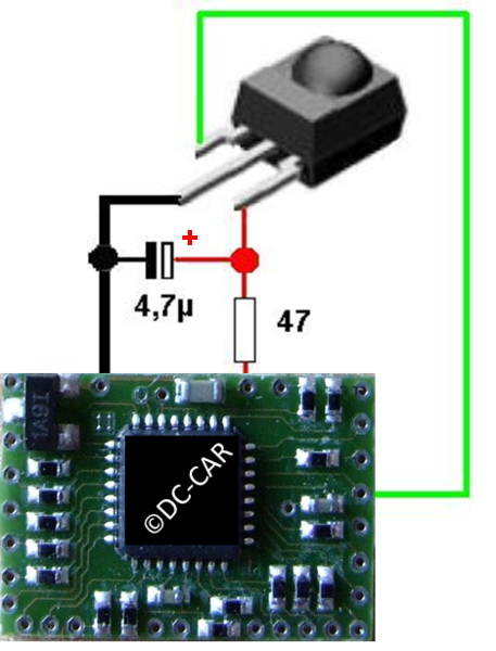 Der Kondensator 4,7 µF bis 10 µF sollte direkt am Fernempfänger angebracht werden.