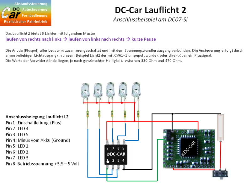 Das Lauflicht bietet 5 Lichter mit folgendem Muster: