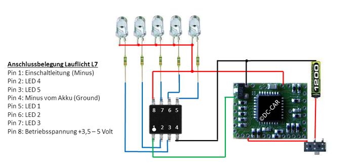 Das Lauflicht bietet 5 Lichter mit folgendem Muster: