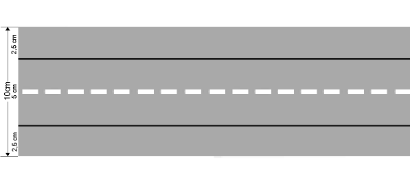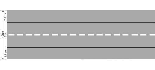 Der Abstand von Spur zu Spur beträgt bei 10 cm Strassenbreite 5 cm. Vom Straßenrand ergeben sich dann 2,5 cm.