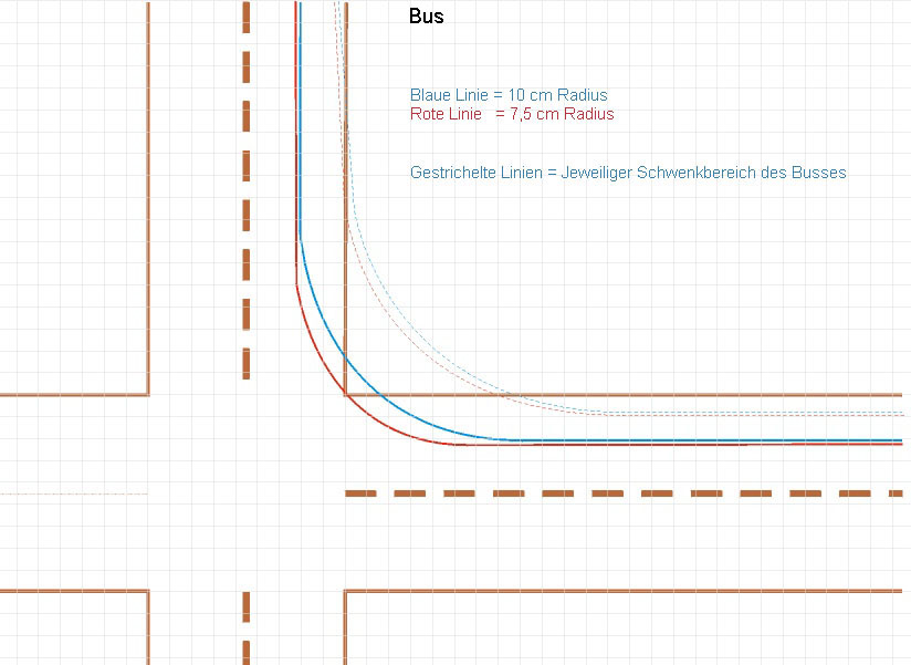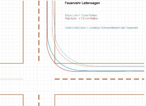 Als Beispiel habe ich die Radien 10 cm und 7,5 cm gewählt. Diese Radien verwende ich in Ortschaften.