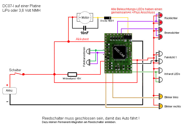 In die Motorleitung werden Dioden eingefügt um die Spannung vom LiPo an die Motorspannung anzupassen.