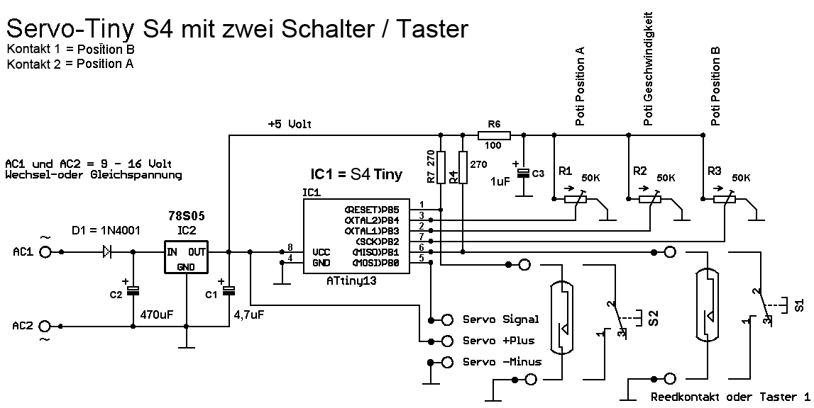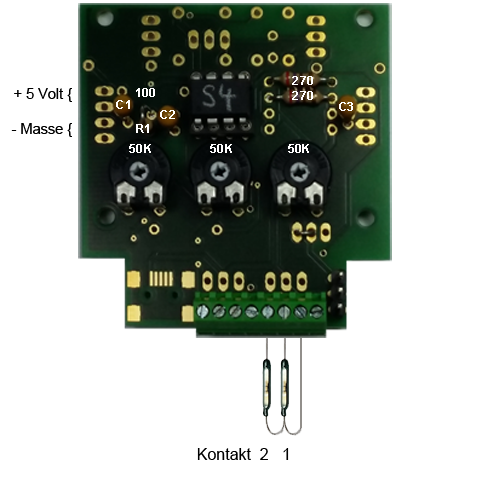 Die Ansteuerung des S4 erfolgt über zwei Taster, Reedkontakt, Hallsensor, Relaiskontakt usw.