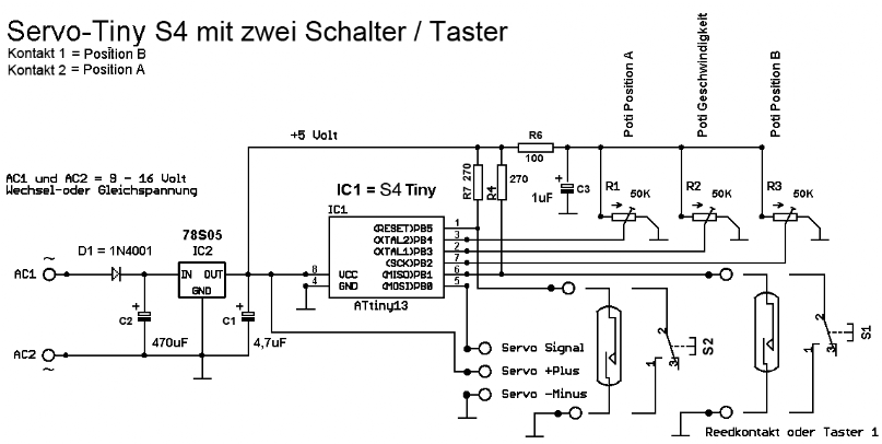 Anschluß 2 nach Masse dreht das Servo wieder zurück in die Stellung "A".
