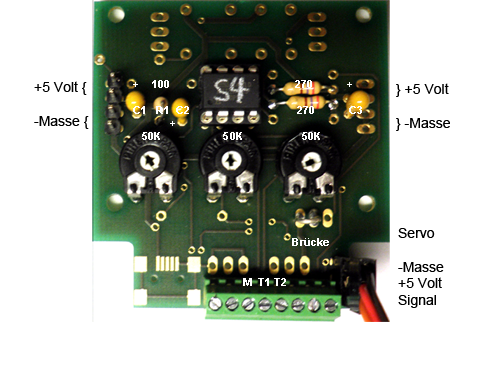Seit 2015 gibt es eine Platine für den S4 Servo-Tiny. Diese wird fertig bestückt geliefert und benötigt noch eine 5 Volt Gleichspannung als